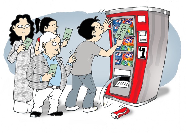 Một người đi đường thấy một anh chàng đang loay hoay nhét tờ 100 đô vào khe hở của một chiếc máy bán nước ngọt tự động, nhưng máy cứ nhè tờ tiền ra. Thấy vậy, người nọ móc ví, bảo: - Máy này không [...]