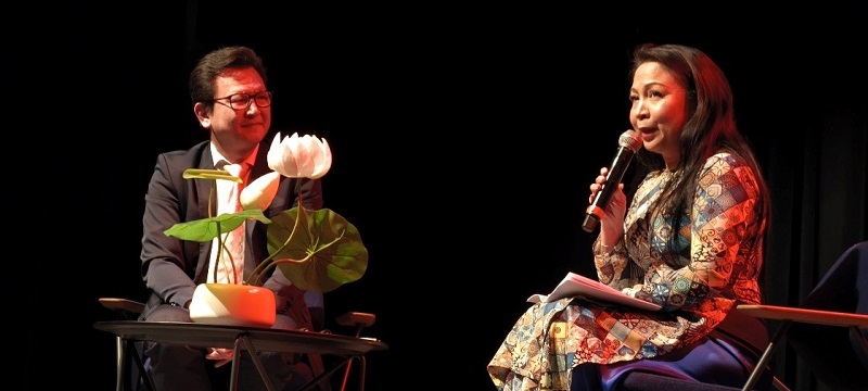 Ở phần tiếp theo, Trúc Tiên xuất hiện không phải với tư cách người tổ chức hay người giới thiệu buổi Tao đàn, mà với tư cách tác giả của Cô Đầu Lầu Gió Ngược và Khúc Tương Âm Bốn Phương, được viết và giới thiệu bằng cả tiếng Việt lẫn tiếng Pháp. Những chia sẻ của Trúc Tiên xoay quanh việc quay về nghệ thuật cổ truyền Đàn Ca Tài Tử, thân phận Cô Đầu, và sự giao thoa giữa các nữ nghệ sĩ Á – Âu. Tất cả cho thấy một mạch suy nghĩ nhất quán: văn hóa chỉ thật sự sống khi được chia sẻ, và Tao đàn chính là không gian để sự chia sẻ ấy diễn ra.