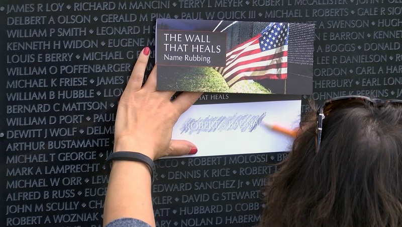 Con bước đến ô chữ thứ nhất, nơi có khắc tên Thomas A. Davis ở tận dưới thấp. Con phải ngồi xuống để can cái tên. Con cảm thấy hồi hộp, sợ hãi khi bắt đầu công việc. Nhưng khi bút chì của con lướt trên mặt trang giấy thì cái tên hiện dần lên. Con chăm chú làm, để cả tâm hồn vào đó, nhờ vậy không còn cảm thấy ý nghĩa buồn bã của chuyện đang làm.