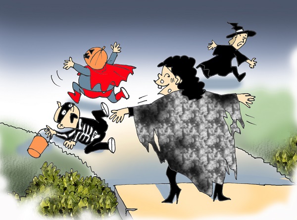 – Năm nay bà xã tao chỉ tốn có $30, hóa trang thành phù thủy, bọn nhỏ sợ thót cổ, vui thiệt!