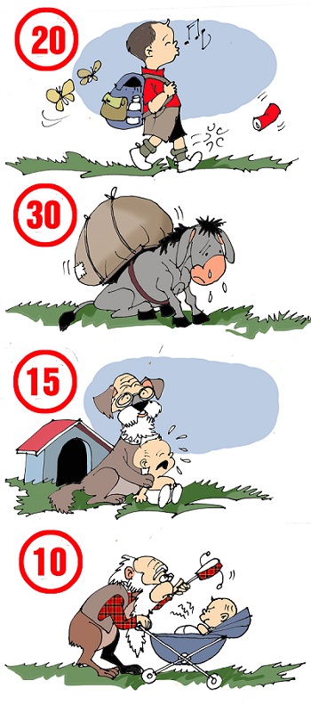– 10 năm cuối đời: mặc dầu hết hơi, vẫn cố làm đủ trò như một con khỉ cho con cháu nó vui.