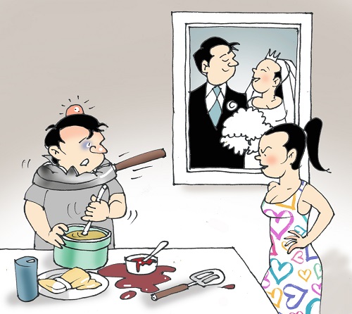 – Không. Bị cô dâu đánh…