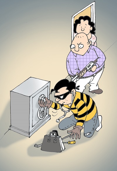 Nửa đêm, có tiếng động lạ ngoài phòng khách. Chủ nhà xách súng đi ra thì thấy một tên trộm đang loay hoay mở két sắt. Hắn run bắn nhưng chủ nhà bình tĩnh nói: