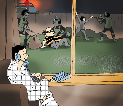 – Alo, nhà tôi có trộm đang đột nhập…