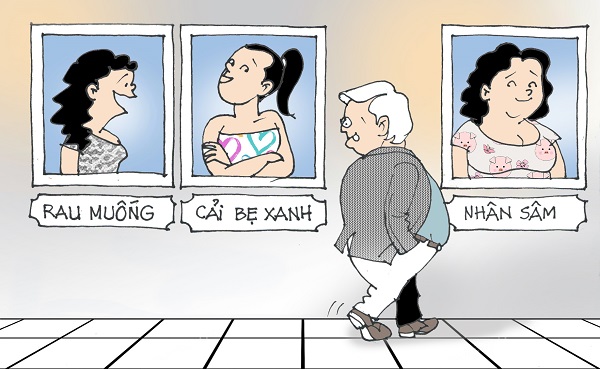 – Bả kể cho vợ tôi ông hay nói vợ như là nhân sâm, bồ bịch như là rau cải thôi. Thiệt không?