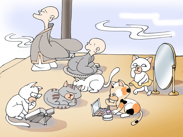 – Tại sao con mèo lúc nào trông cũng thong dong, thư thái vậy sư phụ?