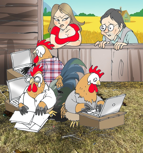 – Anh ạ, những con gà trống ấy toàn là kỹ sư cả đấy.