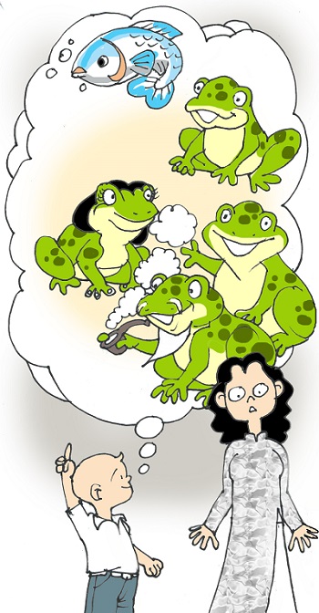 – Dạ là con cá, con ếch, thưa cô.
