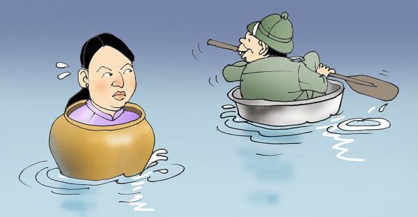 – Ai bảo dùng thau để hứng nước! Ý tôi là khi lụt, người dân có thể ngồi trong đấy để bơi hoặc chứa những món thiết yếu!