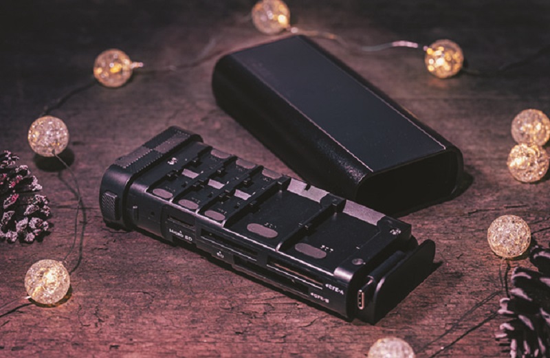 Đây là một cách thuận tiện để mang theo nhiều loại thẻ nhớ trong chuyến đi và truyền dữ liệu sang máy tính hoặc thiết bị sao lưu. Đầu đọc thẻ Pro cắm và chạy có các tính năng: