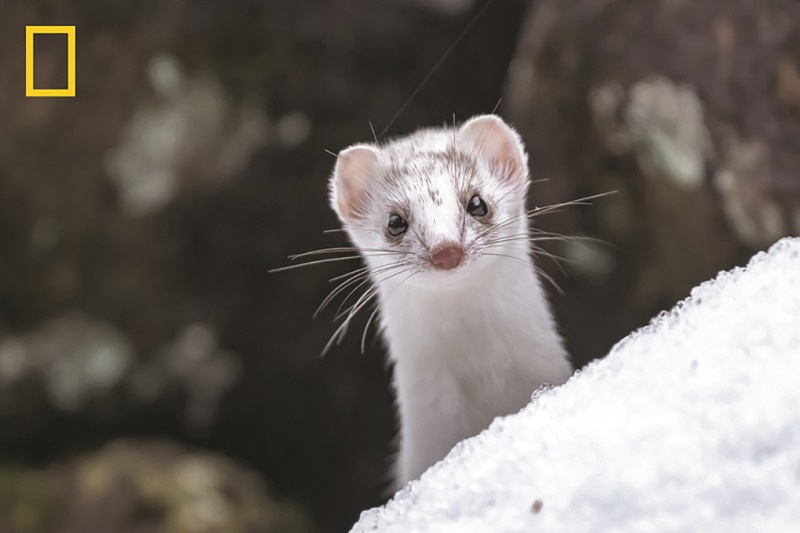 Bức ảnh này gây ấn tượng ngay lập tức bởi vì nó được xây dựng dựa trên phản ứng phổ quát của con người. “Bạn là ai?” Con chồn không đang chạy nước rút hay đang săn mồi. Nó không được miêu tả là “động vật hoang dã quý hiếm”. Nó được miêu tả như một nhân vật – đôi mắt sáng, lanh lợi, chiếc mũi nhỏ màu hồng, bộ ria mép như dấu chấm câu. Đó là kiểu khuôn mặt mà bạn không chỉ nhìn mà còn muốn đáp lại.