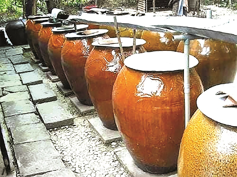 Nước mưa còn được chứa trong lu. Nhà ở thôn quê không có của cải, tiền bạc chi cả nhưng lại rất giàu lu. Mỗi nhà có tới mấy hàng lu. Lu nước mưa để ở nhà bếp của Ngoại tôi dùng để uống, có một ca nhôm để trên nắp. Bọn tôi ăn cơm xong, tạt qua lu, tu thêm một bụng nước đầy, kêu ừng ực, no hai lần nên bụng căng cứng, bước đi nghe kêu óc ách. Bọn trẻ chúng tôi thì tinh nghịch, cứ hay bày nhau nhúng bánh tráng vô đó để ăn vặt. Bánh tráng bủn ra, rớt lềnh bềnh, trăng trắng trong lu, báo hại ông Ngoại tôi phải bao lần súc lu!