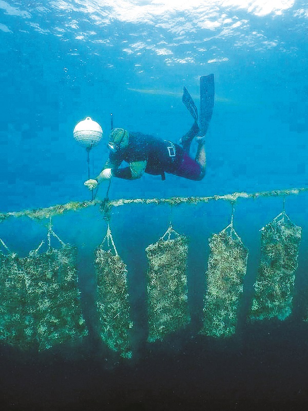 Thợ lặn Moana đang buộc những trái phao tiêu duy trì sự ổn định mạng lưới sợi như bàn chải…