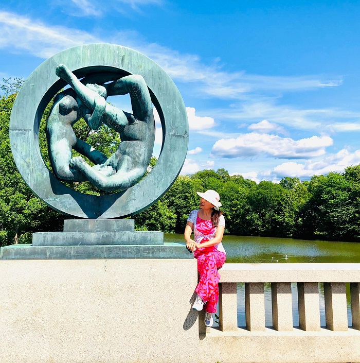 Trưa. Nó đón chuyến xe điện số 12 đến Frognerparken, hay còn gọi là Vigelandsparken. Công viên điêu khắc với hơn 200 bức tượng khỏa thân, vừa bằng đá, vừa bằng đồng, diễn tả đủ mọi trạng thái cảm xúc con người, từ hạnh phúc đến giận dữ, từ sinh ra đến già đi. Có một bức tượng nhỏ mang tên Sinnataggen, “đứa bé giận dỗi”, rất nổi tiếng đến mức ai đi qua cũng rờ rờ một chút cho hên. Đi sâu vào trong, Nó thấy những pho tượng phức tạp hơn, có người ôm nhau, có người vác nhau, người chạy trốn, người níu kéo, như một cuốn phim lặng thinh nhưng đầy dư âm.
