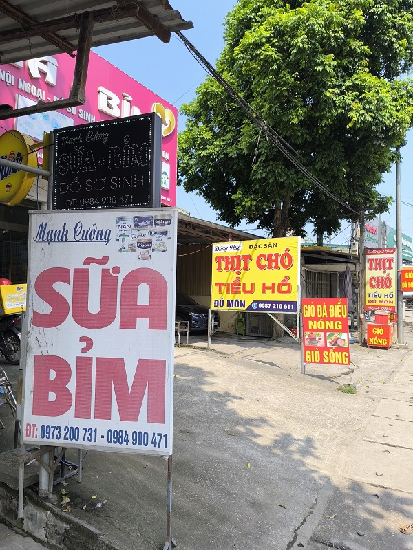 Các khẩu hiệu đỏ chói kiểu «Toàn đảng, toàn dân, toàn quân chung sức» tiếp tục chia đất với các bảng quảng cáo vần điệu như «Hết đau rát, thanh mát cổ họng», «Bán lẻ rẻ như bán buôn»… Mấy người bạn Pháp thắc mắc liên tục, dịch mệt nghỉ, mà cũng không biết dịch làm sao khi gặp phải một quán tên «Chim To Dần» đang tuyển gấp nhân viên!