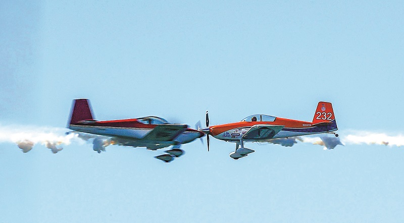 Undaunted Airshows là một màn biểu diễn độc đáo bậc nhất của 2 chiếc máy bay nhào lộn và đâm vào nhau xáp lá cà như ảo thuật. Khéo đến nỗi con mắt người nhìn cũng lầm. (Xin xem hình trang 122)
