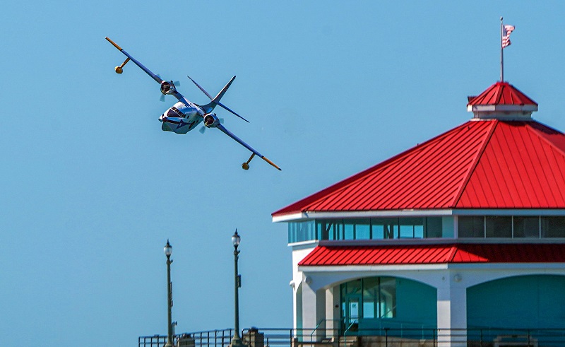 Chiếc máy bay khổng lồ The Grumman HU-16 Albatross bay ngang chóp đỉnh màu đỏ rực của toà nhà trên con đê Huntington Beach là một dấu ấn long trọng của ngày khai mạc cuộc triển lãm. Đây là chiếc thủy phi cơ lớn, 2 máy, của Không Quân và Hải Quân Hoa Kỳ với những nhiệm vụ quan trọng bậc nhất trong việc cứu trợ tìm kiếm và cứu vớt các máy bay bị đắm hay mất tích ngoài biển khơi.
