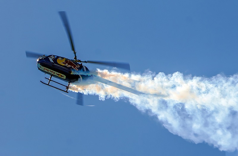 Sự xuất hiện của chiếc trực thăng với dấu hiệu Bò Đỏ Red Bull tung hoành trong những cột khói màu do nó phun ra làm thót tim mọi người. Aaron Fitzgerald, một cựu phi công đã bay chiếc Red Bull BO-105 Aerobatic Helicopter này. Ông là thành viên của đội Red Bull Air Force, là một đội gồm các phi công biểu diễn trên không, giàu kinh nghiệm, chuyên thực hiện các cú nhảy phối hợp cao và trình diễn nhào lộn tại các sự kiện và triển lãm hàng không trên toàn thế giới.