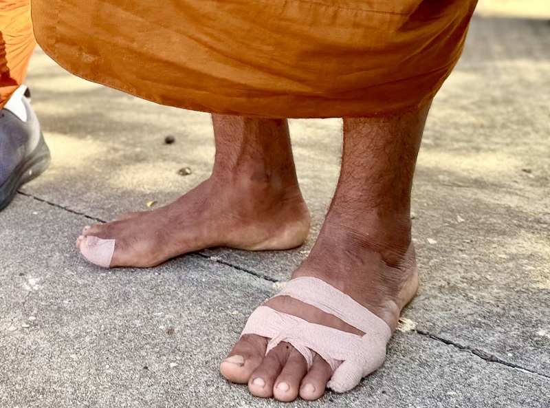 Đôi chân trần chịu nhiều vết thương. Ảnh: Thạch Thảo