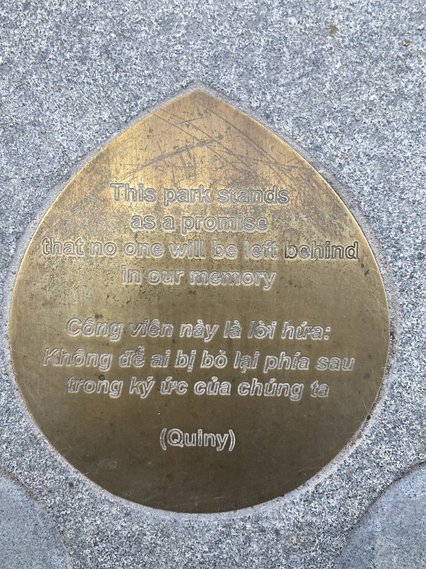 “Công viên này là lời hứa: “Không để ai bị bỏ lại phía sau” – trong ký ức của chúng ta.” – Lâu lâu vẫn bắt gặp những thông điệp mình không thích – Nguồn: Du Uyên