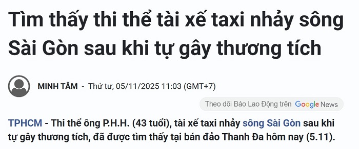 Như ngày 3-11-2025, đọc 2 tin tức tự sát trong một buổi sáng: Một nam sinh viên năm cuối một trường đại học ở Sài Gòn (22 tuổi) nhảy cầu Thủ Thiêm 1, được cho là do khủng hoảng sau khi bị lừa mất 200 triệu VND. Một người đàn ông (43 tuổi) làm nghề tài xế taxi đã dùng dao tự cắt cổ trên cầu Sài Gòn rồi nhảy xuống sông. Tuy không quen biết họ nhưng tôi đã khóc.