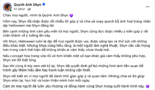 “Ông Thọ” Quỳnh Anh Shyn xin lỗi và gỡ hình sau khi bị phản đối – Nguồn: Quỳnh Anh Shyn