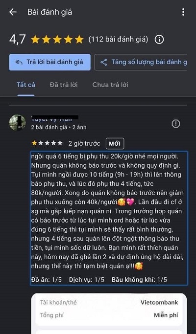 Chuyện bắt đầu khi một chủ quán cà phê nhỏ, mới mở ở quận 3, ấm ức kể rằng hôm nay có một nhóm thiếu nữ mang balo đến quán từ 9 giờ sáng tưng bừng nắng, ròng rã cắm trại đến tận 19 giờ tối, ánh trăng mịt mù. Mười tiếng đồng hồ trôi qua, mỗi người chỉ uống một ly nước, có người không uống. Đến bữa trưa, các cô rủ nhau ra ngoài ăn uống, để lại đồ đạc làm tin giữ chỗ, khi no nê quay về thì thản nhiên ghép ghế… nằm ngủ ngay giữa quán. Còn đặt nước của quán khác tới uống. Xót ruột vì không gian bị chiếm dụng, chủ quán cho nhân viên ra nói nhỏ, mời khách gọi thêm nước, các cô khước từ. Quán nảy ra “sáng kiến” bù lỗ là đề nghị khoản phụ thu bốn mươi ngàn VND một người, các cô gái cũng không phản đối. Tưởng không bị phản đối thì là đồng ý, thuận mua vừa bán, ngờ đâu sau khi cánh cổng khép lại, nhóm khách lên trang địa chỉ của quán trên Google Maps thả hàng loạt đánh giá một sao, trách cứ quán không minh bạch, trách quy định tự phát khiến họ mếch lòng.