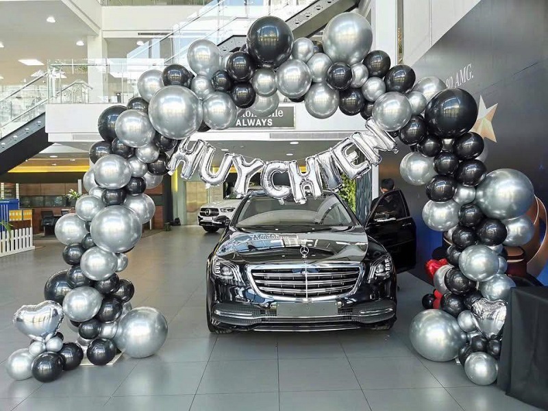 Bong bóng, hoa, rượu… – Trong một “lễ giao xe” – Nguồn: Facebook