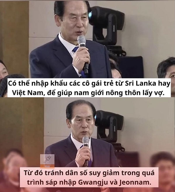 Để minh chứng cho sự “bền bỉ” đó không hề âm thầm lặng lẽ, ngày 4-2-2026, tại một buổi tọa đàm chính thức của chính quyền đồng thời được phát trực tiếp trên truyền thông, chủ tịch quận Jindo, ông Kim Hee Soo, nói rằng: “Cần thực hiện các biện pháp đặc biệt trong vấn đề dân số như “nhập khẩu” các thiếu nữ trẻ từ Sri Lanka hoặc Việt Nam để gả cho các thanh niên nông thôn bổn quận.”