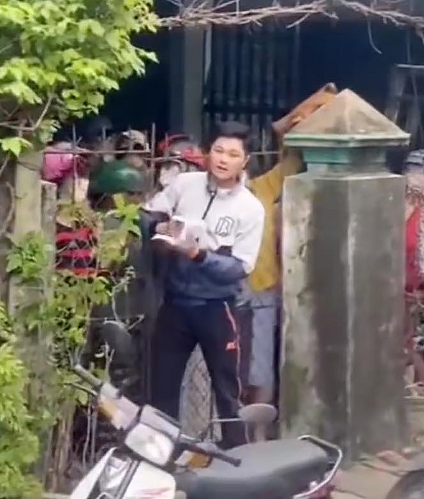Người quay video kể: “Không hiểu bằng cách nào nhưng ông anh trưởng thôn khu em đã lùa được bà con vào trong để khoá cửa ngoài lại. Thế là bà con vào xong thì trưởng thôn đi ra khoá cửa lại liền, cầm theo danh sách đứng bên ngoài kiểm số lượng, tên tuổi. Tới lượt ai nhận thì mở cửa cho ra… Không sợ nhầm, không sợ sai, không sợ trùng. Quan trọng là bà con cười ồ, không ai giận!”