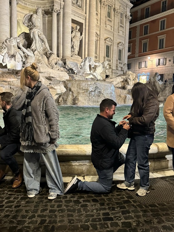 Thành Rome (Ý), nơi có nhiều cặp du khách chọn làm nơi cầu hôn nhất nhì Châu Âu và lần này cũng vậy. Chỉ khác là lần này có sự hiện diện của một kẻ thứ ba. Không phải để phá rối uyên ương mà là một người hoàn toàn xa lạ bị níu chân (nghĩa đen) bởi “nam chính” – người đang bối rối cầu hôn bạn gái. Khi anh ấy quỳ xuống, mở nhẫn, bàn chân đã giẫm lên ống quần của chị gái xa lạ, cô gái kiên nhẫn ngoảnh mặt, giảm sự hiện diện của mình xuống mức tối thiểu, chờ cho cặp đôi kia cầu hôn xong xuôi thì xách quần bước đi. Chính vì vậy mà bức hình trọng đại ấy đã có 3 nhân vật chính. Không biết chụp 3 ở Châu Âu có được coi là hên hay xui, nhưng vừa dễ thương vừa mắc cười.