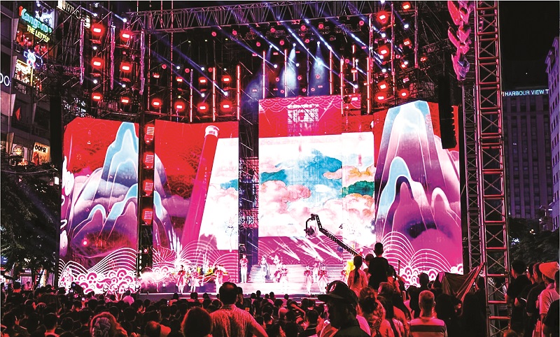 Gala Chuông Vàng Vọng Cổ trên phố đi bộ Nguyễn Huệ. (IANBUI/TRẺ)