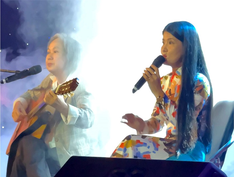 TS Hoàng Yến (trái) và Thuỷ Tiên song ca “Bài Ca Hạnh Ngộ” của Lê Uyên Phương thật tuyệt vời. (IANBUI/TRẺ)