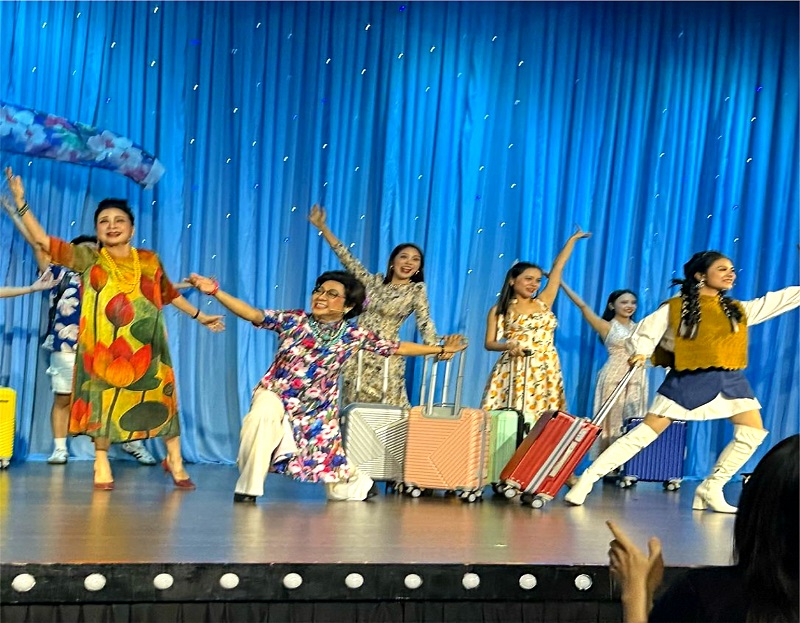 Cô Giáo Duyên (Thành Lộc, giữa) cùng các diễn viên phụ trong màn cuối. (IANBUI/TRẺ)