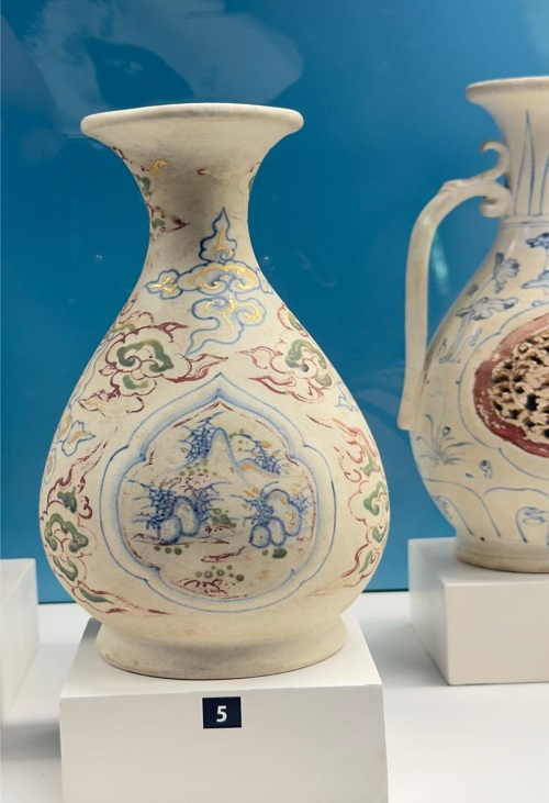 Tôi đặc biệt chú ý đến đồ gốm của người Việt thời nhà Mạc (1527-1677). Nhiều món hết sức tinh xảo, chứng tỏ nghệ thuật làm gốm của người mình thời đó cũng không thua ai và vẫn đậm chất Việt. Bức ảnh thô sơ này không thể nói lên hết được vẻ đẹp của các hiện vật trong phòng này. Phải tận mắt nhìn thấy chúng mới thiệt đã!