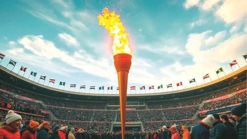 Đuốc Thế Vận Hội trong lễ khai mạc Milan Cortina Winter Olympics 2026 (Yaroslaf/Dreamstime.com)