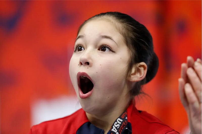 Alysa Liu phản ứng sau khi thắng huy chương Vàng tại Giải trượt băng Quốc Gia ở Detroit năm 2019. (Raj Mehta)