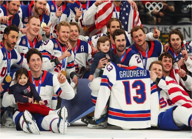 Trận chung kết hockey Nam giữa Mỹ và Canada cũng gay cấn không kém. Mỹ ghi bàn trước 1-0. Nhưng Canada gỡ huề và một lần nữa trận đấu bước vào giờ phụ OT. Không ai tin nổi, nhưng Mỹ đã bất ngờ thắng một đội mạnh hơn y như đã làm năm 1980 khi đánh bại đội Xô-Viết trong trận đấu lưu danh sử tích. Sau 46 năm khô hạn, Mỹ đã giành lại được chiếc HCV. Điều đáng nhớ hơn nữa, là lúc chụp hình với chiếc huy chương, họ đã mang hai đứa con mới vài tuổi của người đồng đội Johnny Gaudreau bị xe tông chết cách đây không lâu, cho hai đứa bé đại diện cho cha mình trên sân băng Olympic. Thông điệp của Team USA không thể rõ hơn: Tương lai đất nước là đây!