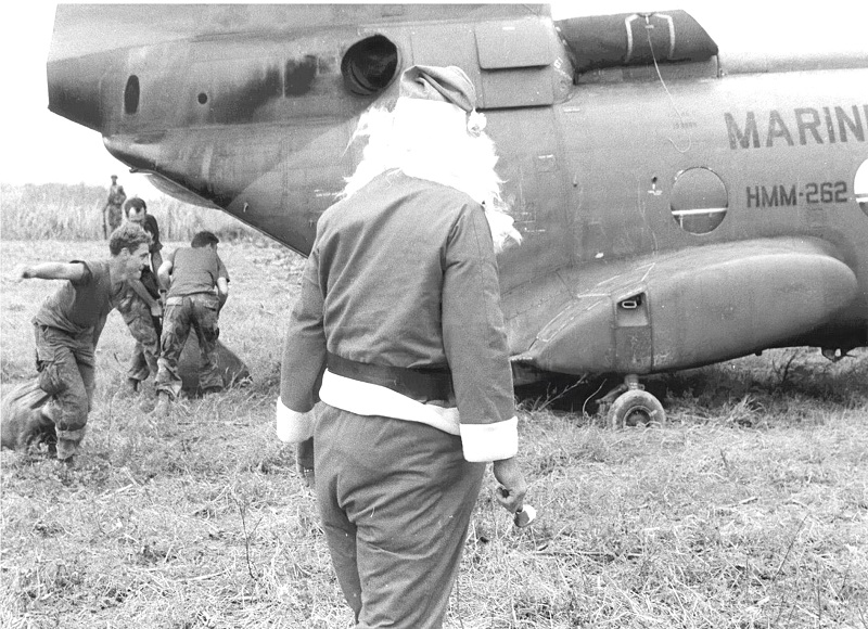 Ông già Noel dùng Chinook để mang quà đến cho binh sĩ vào ngày Giáng Sinh 1969. (U.S. Marine Coprs)