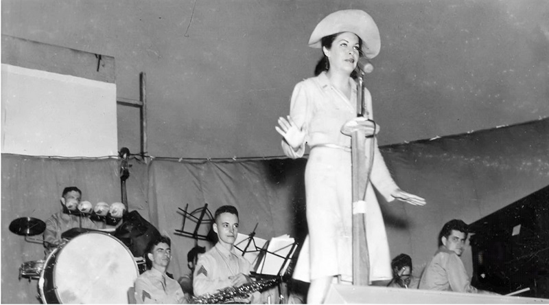 Nữ diễn viên kiêm Đại tá Martha Raye biểu diễn tại Việt Nam trong một chương trình của Bob Hope. (NARA)