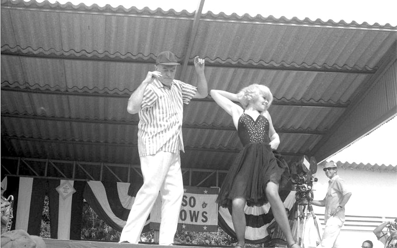 Bob Hope và ca sĩ Joey Heatherton trình diễn tại Di An, 12/1966. (Robert Kersey/Stars and Stripes)