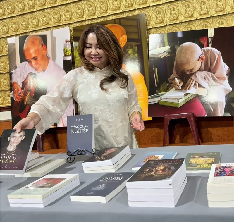 Buổi lễ cũng là dịp cho mọi người có cơ hội tiếp cận mấy chục tác phẩm của Tuệ Sỹ — từ thơ ca, nghiên cứu, dịch thuật, cho đến bộ sách đồ sộ Đại Tàng Kinh Việt Nam gồm 23 quyển, được mang tận từ Sacramento xuống. Thêm vào đó là những quyển sách về Tuệ Sỹ hay dịch thơ ông sang tiếng Anh của nhiều tác giả khác nhau. Nhìn ba dãy bàn dài đầy những đầu sách đủ loại, ta có thể hiểu được phần nào những cống hiến của Thích Tuệ Sỹ cho Phật giáo Việt Nam nói riêng, và văn chương, văn hoá Việt Nam nói chung. Thành thật cảm ơn các cư sĩ và các sư thầy, sư cô đã đóng góp công sức cho chương trình được thành công.