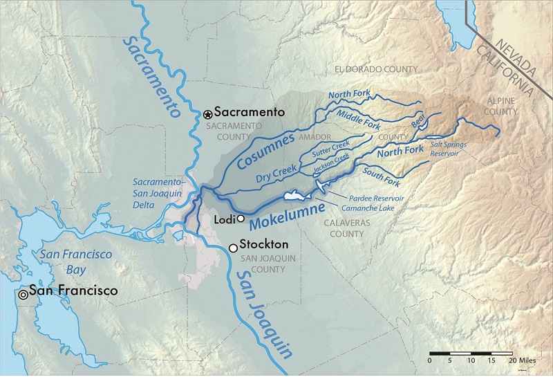 Vùng đất này ngày xưa không có dân da trắng. Mãi đến giữa thế kỷ 19 mới có vài gia đình đến lập nghiệp và cho xây một ngôi trường vào năm 1859. Khi công ty hoả xa Central Pacific Railroad muốn xây một tuyến đường sắt mới đến Sacramento, năm 1869 một số già làng quyết định hiến tặng cho công ty 160 mẫu đất nhằm khuyến dụ CPR đặt một nhà ga tại đây. Thế là Ga Mokelumne ra đời, đặt theo tên dòng sông cạnh đó. Kể từ khi có đường sắt, cư dân quanh vùng bắt đầu đổ về Mokelumne — tên làng thuở bấy giờ. Trong vòng hai mươi năm, dân số tăng nhanh từ chỉ vài chục gia đình lên đến hơn 2000 người vào đầu thế kỷ 20.