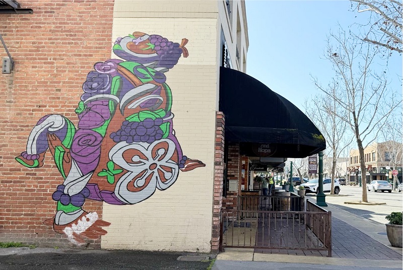 Một bức bích hoạ về nho và rượu trên phố cổ Lodi. (IANBUI/TRẺ)