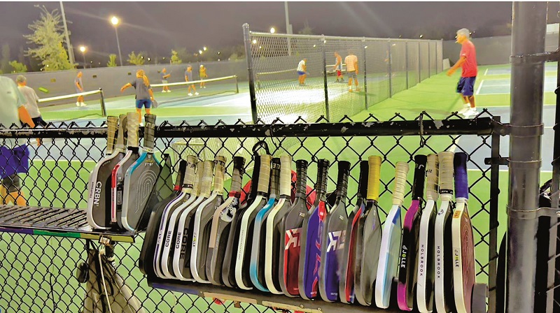 Người chơi đặt vợt để “giữ chỗ” tại sân Oasis ở Sacramento.