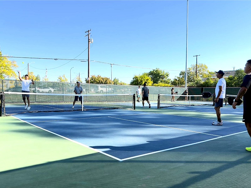 Sân pickleball Jack Sheldon ở Sacramento, nơi quy tụ nhiều người Việt đủ mọi lứa tuổi. (IANBUI/TRẺ)