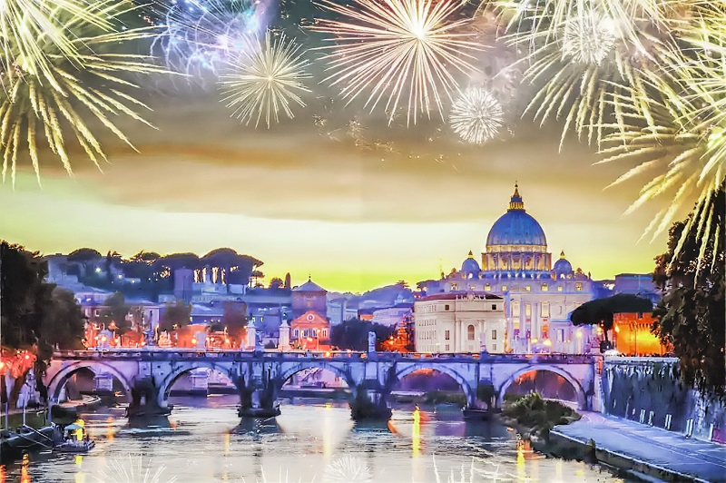 Pháo bông mừng năm mới trên bầu trời Rome. (Neirfy – stock.adobe)