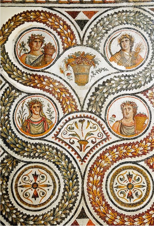 Gạch mosaic ở Acholla với biểu tượng 4 mùa, khoảng TK 3 AD. (Public domain)