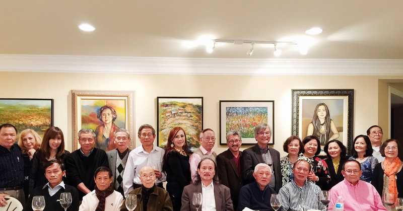 Họp mặt văn nghệ sĩ tại nhà Trương Vũ ở Washington, DC vào Tháng Mười, 2015. Trong hình, hàng đứng, từ trái: Trương Văn Dân và bà xã Elena Pucillo, Nguyễn Thị Thanh Bình, Phùng Nguyễn, Nguyễn Đình Vinh, Trần Doãn Nho, Bạch Mai, Nguyễn Minh Nữu, Nguyễn Quang, Trương Vũ, chị Trương Vũ, chị Nguyễn Minh Nữu, chị Phạm Cao Hoàng, chị Trần Doãn Nho, Phạm Cao Hoàng, chị Lữ Quỳnh. Hàng ngồi, từ trái: Đoàn Văn Khánh, Nguyên Minh, Đinh Cường, Phạm Nhuận, Nguyễn Tường Giang, Lữ Kiều, Lữ Quỳnh. (Hình: Phạm Cao Hoàng)