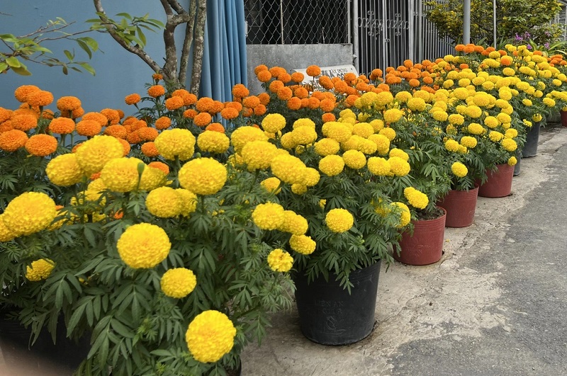 Những chậu bông vạn thọ vàng rực rỡ